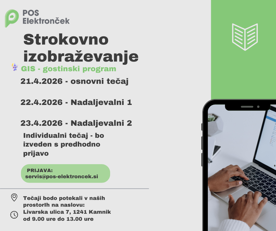 Strokovno izobraževanje za stranke Vabimo vas, da se nam pridružite na strokovnem izobraževanju, kjer boste nadgradili svoje znanje, pridobili praktične izkušnje ter spoznali napredne možnosti uporabe naših rešitev. Izobraževanje je zasnovano postopno, zato lahko izberete stopnjo glede na vaše predznanje ali se udeležite celotnega sklopa. Termini izobraževanj Osnovni tečaj: 21. april 2026 Nadaljevalni tečaj 1: … Continued